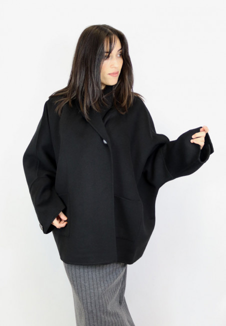 Aggiungi lista dei desideri Cappa in lana Vicolo TF0012 - NERO Cappotto effetto cappa hand made misto lana. Manica ampia che richiama la linea di una mantella. Collo avvolgente e chiusura asimmetrica con... 185,20 € 231,50 € -20%