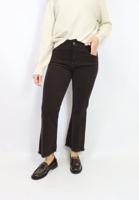 Aggiungi lista dei desideri Pantalone millerighe Tensione In PA3727AI25 - MARRONE Pantalone millerighe effetto velluto. Modello flare cropped fit con chiusura frontale con zip e bottone. Modello 5 tasche e vita medio alta. La... 69,00 €