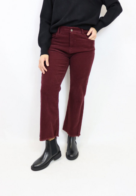 Aggiungi lista dei desideri Pantalone millerighe Tensione In PA3727AI25 - BORDEAUX Pantalone millerighe effetto velluto. Modello flare cropped fit con chiusura frontale con zip e bottone. Modello 5 tasche e vita medio alta. La... 69,00 €