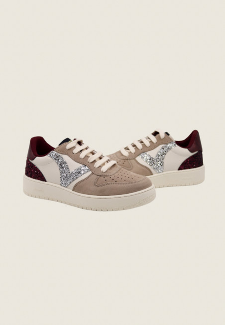 Aggiungi lista dei desideri Sneaker Victoria con dettagli glitter1258271 - TORTORA Sneakers di tendenza realizzate in similpelle con inserti in crosta di pelle. V laterale in glitter e dettaglio metallizzato sull'inserto... 69,30 € 99,00 € -30%