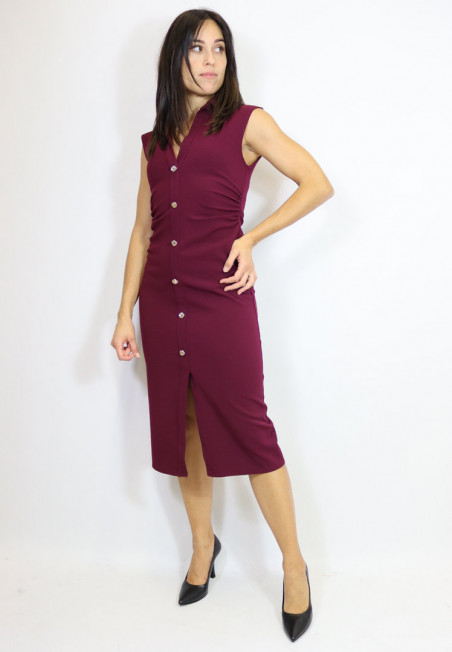 Aggiungi lista dei desideri Vestito con bottoni Susy Mix V12308SCR - BORDEAUX Vestito smanicato modello tubino con fila di bottoni sul davanti e scollo a camicia. Elasticizzato, ha un leggero drappeggio in vita. Veronica è... 55,00 €