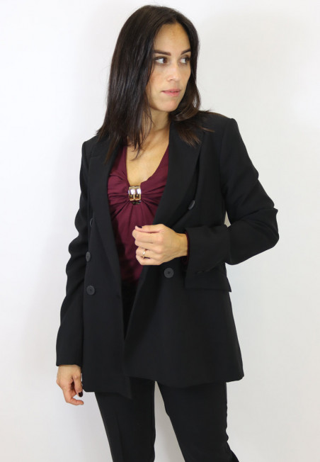 Aggiungi lista dei desideri Giacca doppiopetto Haveone JGE-P029 - NERO Giacca modello doppiopetto realizzata in morbida viscosa. Scollo con classico rever, chiusura con bottoni e tasche a pattina frontali. Puoi... 159,00 €