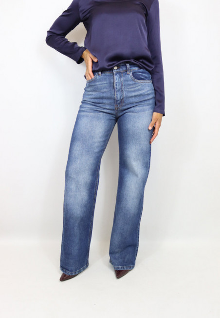Aggiungi lista dei desideri Jeans wide leg a vita alta Haveone Tokyo PGZ-N072 - BURRO Jeans modello palazzo wide leg a vita alta di Haveone. Chiusura frontale con cerniera e bottone. Tasche laterali e sul retro. Veronica è alta 163... 39,50 € 79,00 € -50%
