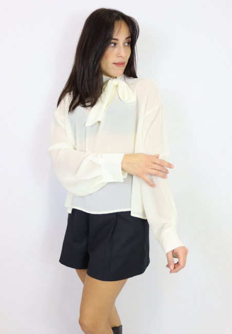Aggiungi lista dei desideri Camicia fiocco You Decide C10439 - PANNA Camicia con fiocco al collo e polsino. Leggermente trasparente. Veronica è alta 163 cm e indossa S. Vestibilità regolare. 100% polistere. 39,00 €