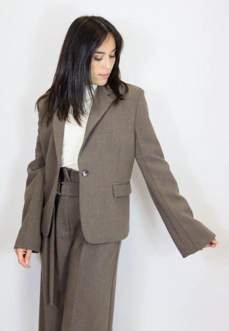 Aggiungi lista dei desideri Giacca monopetto Vicolo TF0203 Giacca modello monopetto a un bottone e tasche frontali a patta. Modello dritto con maniche svasate a campana. Veronica è alta 163 cm e indossa... 168,00 €
