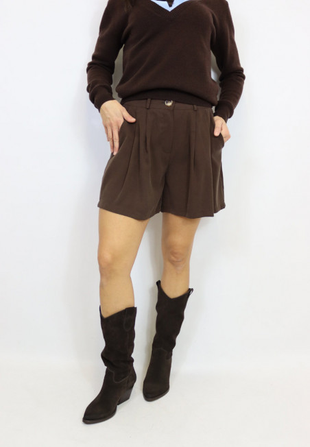 Aggiungi lista dei desideri Shorts in viscosa Vicolo TF1166 Shorts in viscosa con elastico sul retro, chiusura con zip e bottone e tasche laterali. Modello con passanti. Veronica è alta 163 cm e indossa... 65,00 €