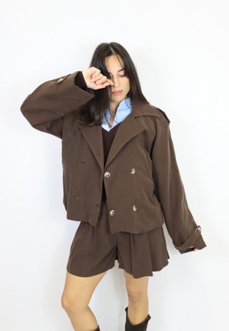 Aggiungi lista dei desideri Giacca trench in viscosa Vicolo TF1167 - MARRONE Giacca in viscosa modello trench dalla vestibilità ampia. Doppiopetto, tasche a filo laterali, cinturino al polso e sulle spalle e cintura in vita... 125,00 €