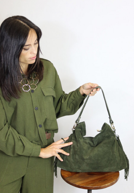 Aggiungi lista dei desideri Shopper in pelle scamosciata con frange Lidia - VERDE MILITARE Lidia è la borsa che darà un tocco di stile ai tuoi casual look. Realizzata in pelle scamosciata, presenta ai lati delle frange che le danno un... 119,00 €