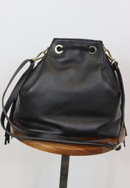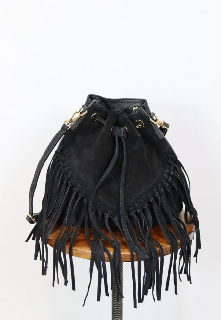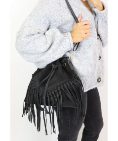 Carlotta è la borsa a secchiello che darà un tocco di stile ai tuoi casual look. Il back e la base sono in pelle martellata, mentre il davanti è in pelle scamosciata. Presenta sul fondo delle frange che le danno un allure country/boho chic. La puoi portare a spalla o cross body grazie alla tracolla regolabile.