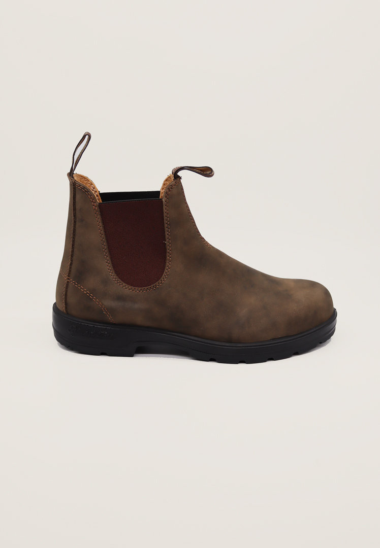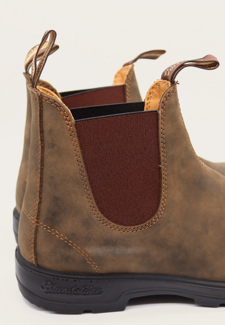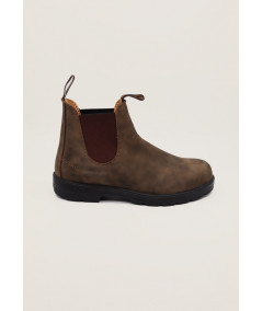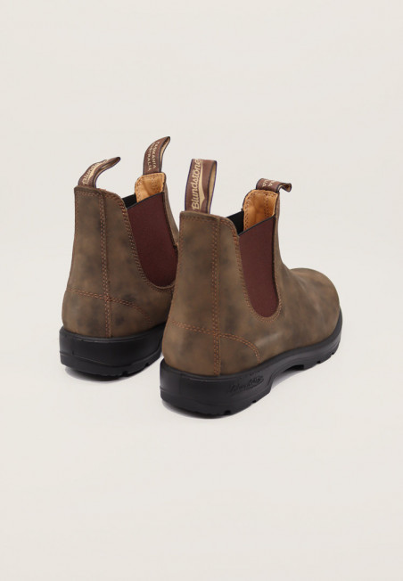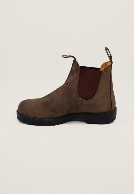 Stivaletto Blundstone modello Chelsea realizzato con tomaia liscia in pelle pregiata effetto invecchiato, in un caldo color marrone Crazy Horse. A facilitare la calzata davanti e dietro ci sono due linguette in tessuto con nome e logo del celebre brand australiano. Il modello è caratterizzato da una suola in gomma dentata con tallone rialzato e logato per una perfetta.