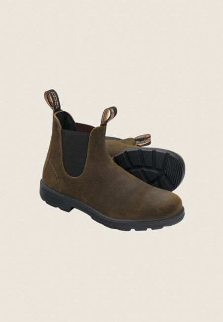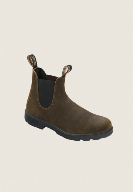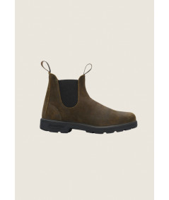 Gli stivaletti modello Blundstone #1615 sono realizzati con tomaia liscia in pelle scamosciata resistente all'acqua, in un caldo e fashion colore verde oliva scuro. Design ispirato ai Chelsea boots con classici elastici laterali, si elevano su di una comoda suola in gomma antiscivolo con carrarmato. Dotati di linguetta frontale e posteriore per facilitare la calzata, sono scarpe comode e alla moda della serie Originals, per look casual chic.