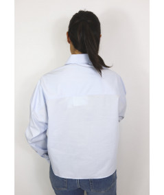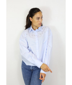 Camicia con applicazioni gioiello ricamate a mano. Modello dritto con manica scesa.