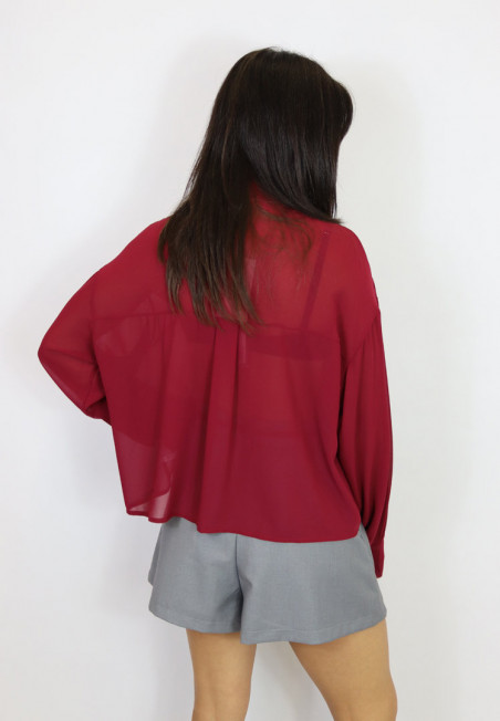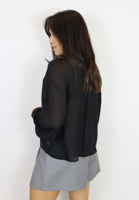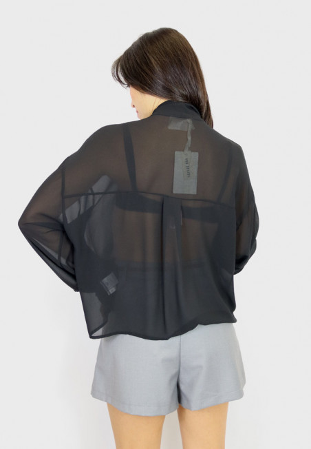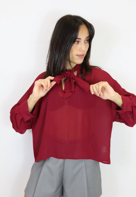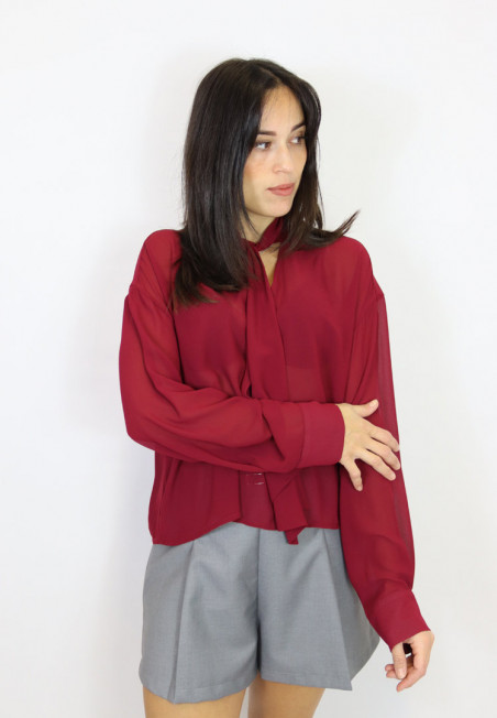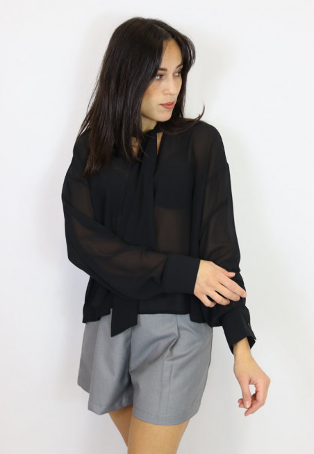 Camicia con fiocco al collo e polsino. Leggermente trasparente.