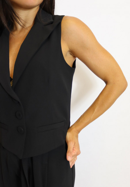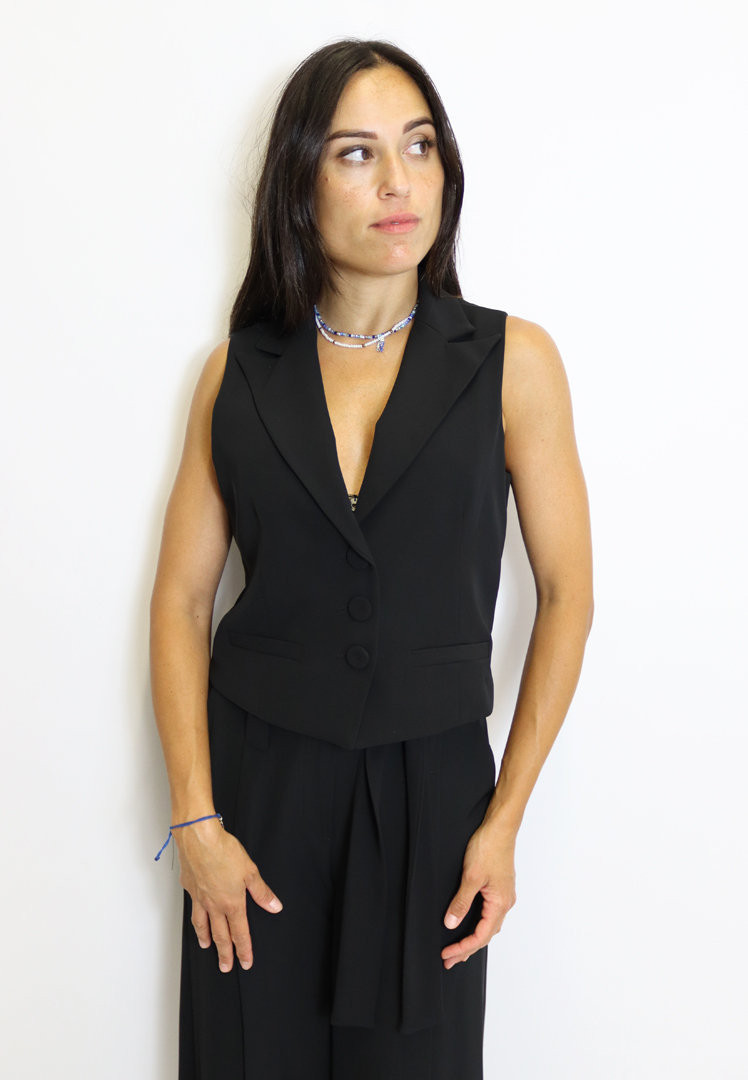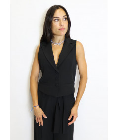 Gilet corto a tre bottoni foderati con revers a lancia.