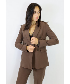 Giacca modello doppiopetto realizzata in morbida viscosa. Scollo con classico rever, chiusura con bottoni e tasche a pattina frontali. Puoi abbinarla al suo pantalone palazzo o sigaretta per creare il coordinato più richiesto della stagione. Tre splendide varianti colore tra cui scegliere!