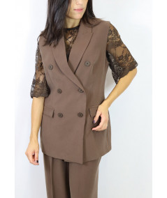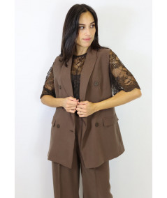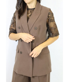 Gilet lungo modello doppiopetto realizzato in morbida viscosa. Scollo con classico rever, chiusura con bottoni e tasche a pattina frontali. Puoi abbinarlo al suo pantalone palazzo o sigaretta per creare il coordinato più richiesto della stagione. Tre splendide varianti colore tra cui scegliere!