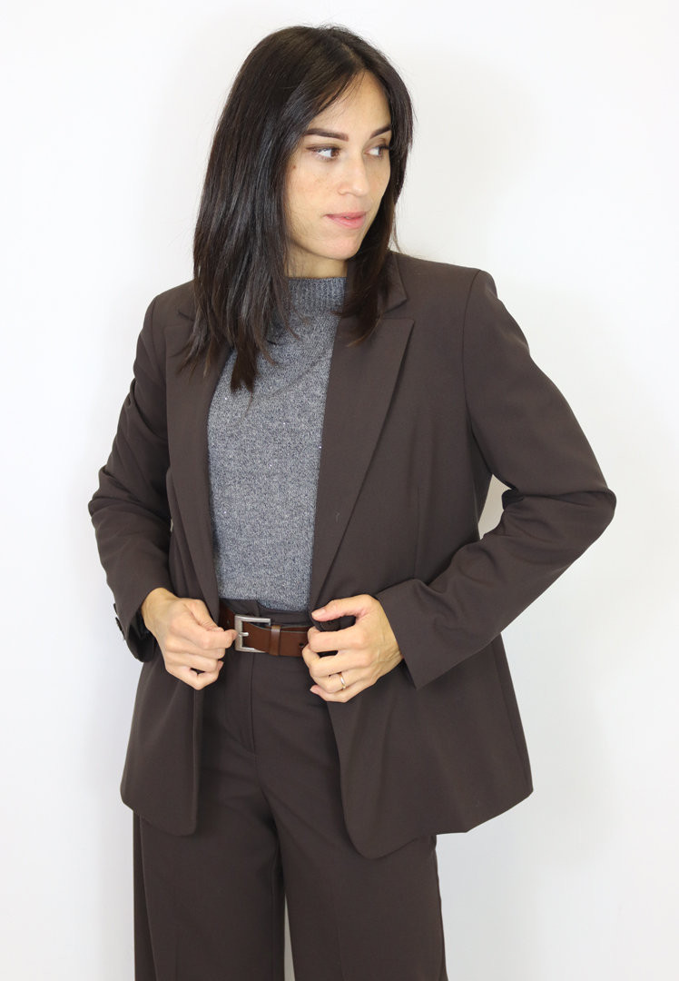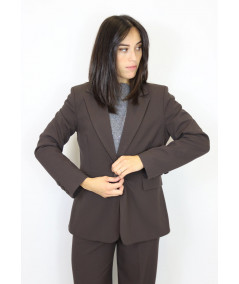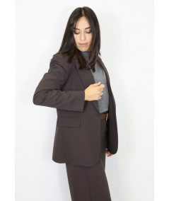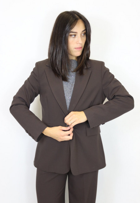 Giacca modello monopetto a un bottone e tasche frontali a patta. Modello dritto.