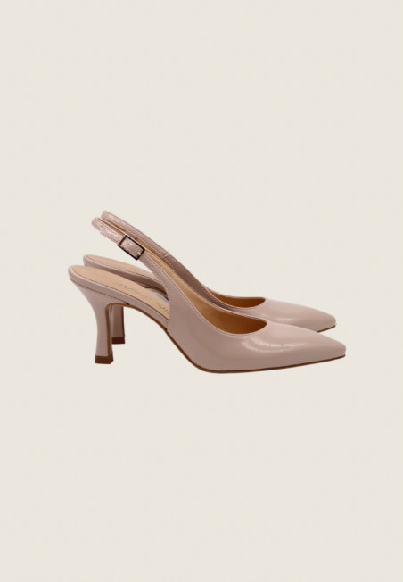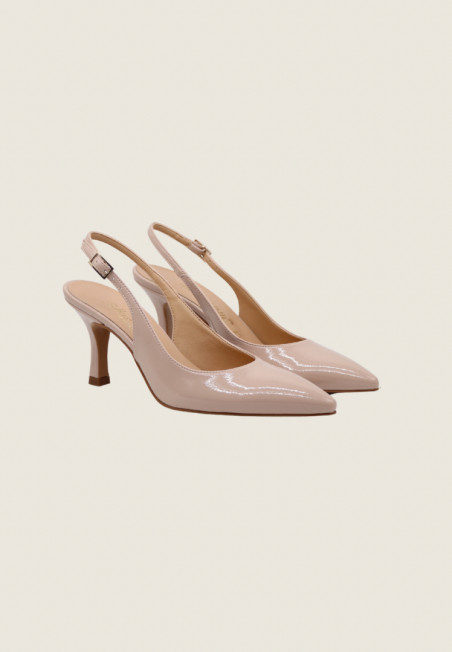 Dècollète slinback in similpelle effetto croco con punta stretta, tallone aperto e allacciatura dietro la caviglia facilitata grazie all'elastico. Un cinturino corre sul collo del piede a dare stabilità. Il tacco a rochetto misura 3,5 cm. Meraviglioso gioco a tre colori che rende questa slingback protagonista di ogni tuo look, anche sotto ad un semplice paio di jeans!