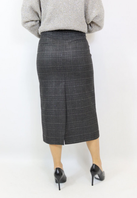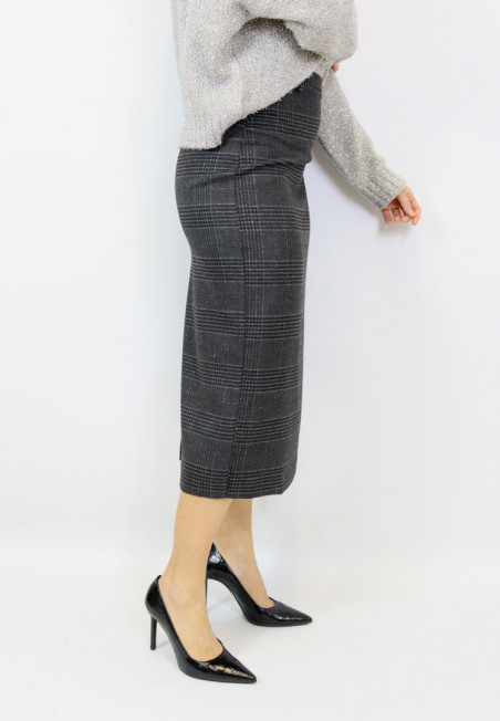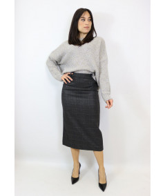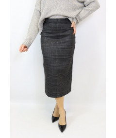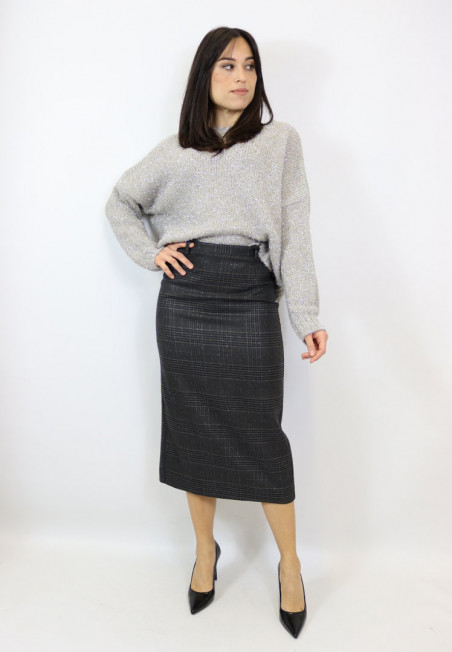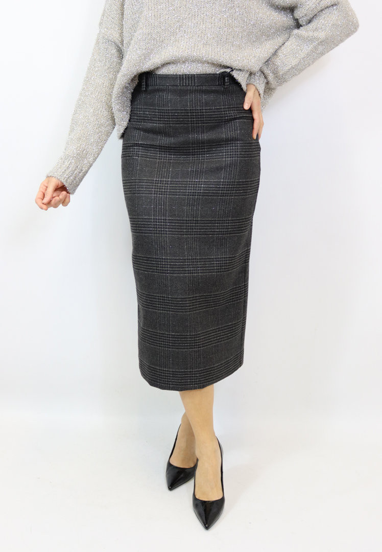 Gonna a matita in principe di galles con filo lurex. Chiusura sul retro con zip invisibile e spacco posteriore. Perfetta per le tue feste!