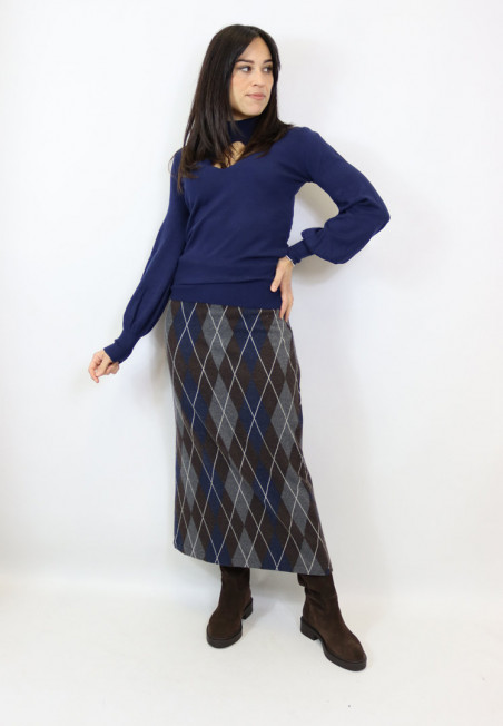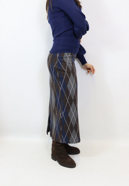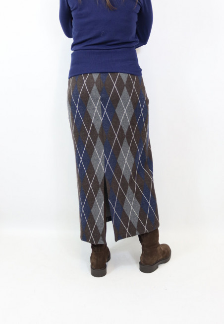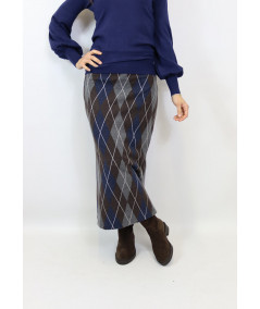 Gonna a matita a rombi. Chiusura sul retro con zip invisibile e spacco posteriore. Perfetta per le tue feste!