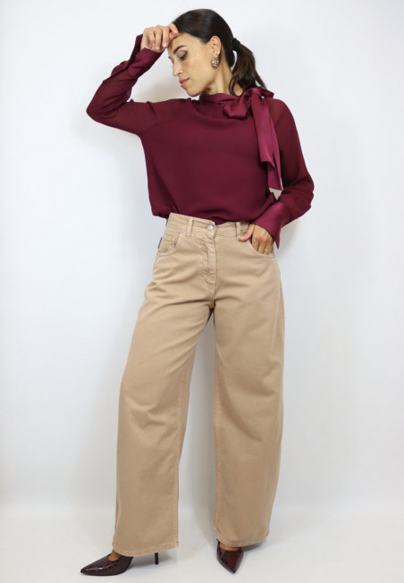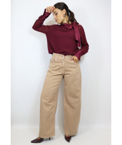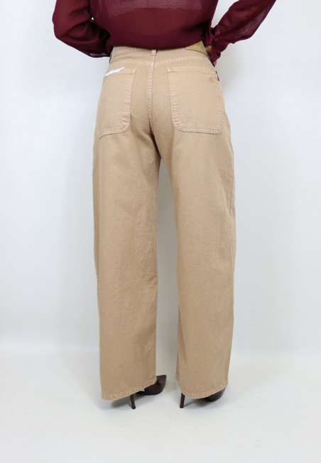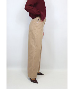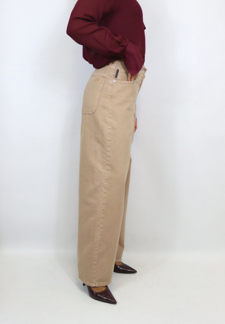 Jeans loose fit dalla vita media. Modello 5 tasche, con chiusura con zip e bottone. Ampio sui fianchi si restringe leggermente alla caviglia stile baloon.
