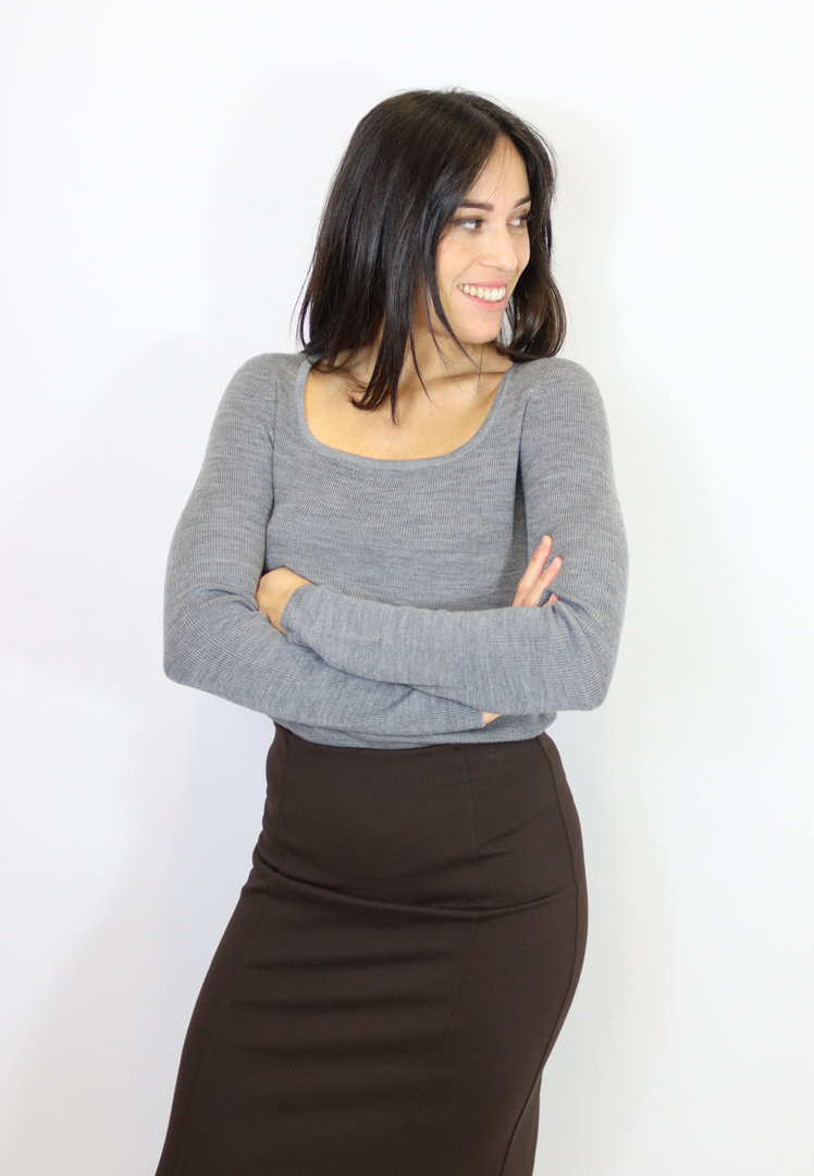 Maglia a costine con scollo a madonna. Un capo basic da avere nel guardarobada e sfruttare in mille modi diversi!
