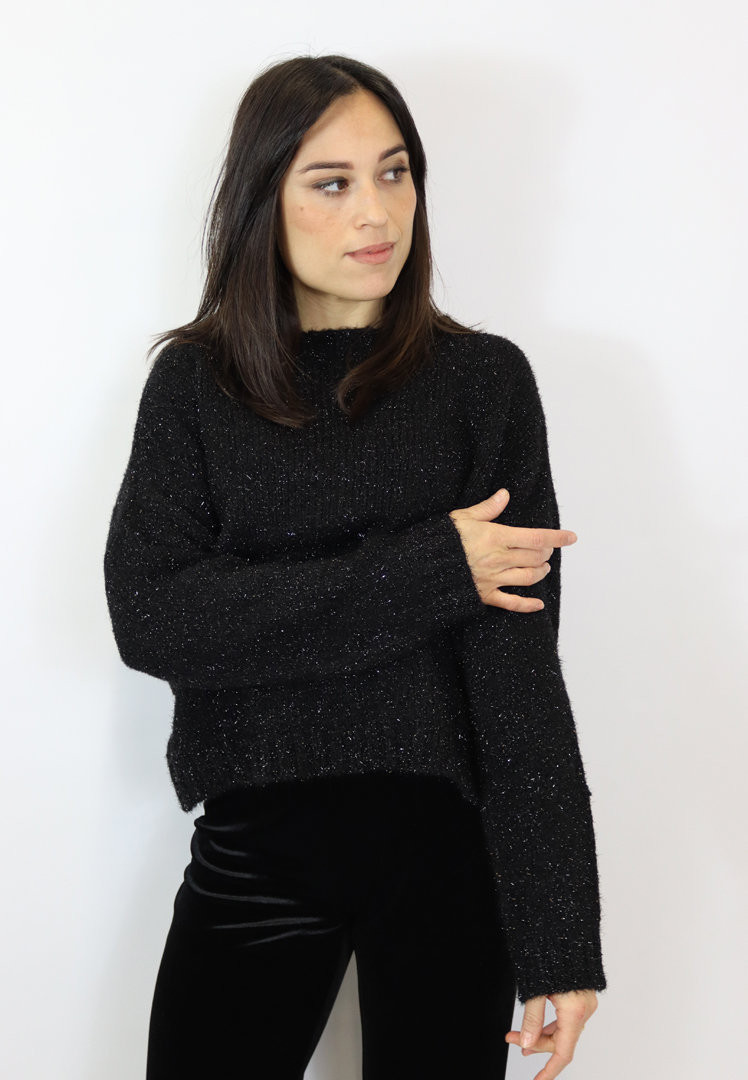 Maglia girocollo lurex dal taglio dritto e manica scesa. Ti accompagnerà durante tutto il periodo delle feste!