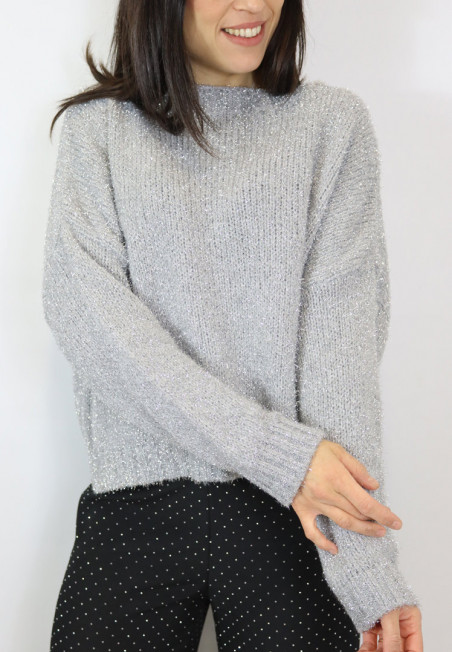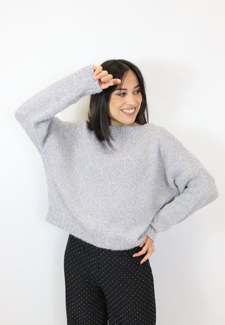 Maglia girocollo lurex dal taglio dritto e manica scesa. Ti accompagnerà durante tutto il periodo delle feste!