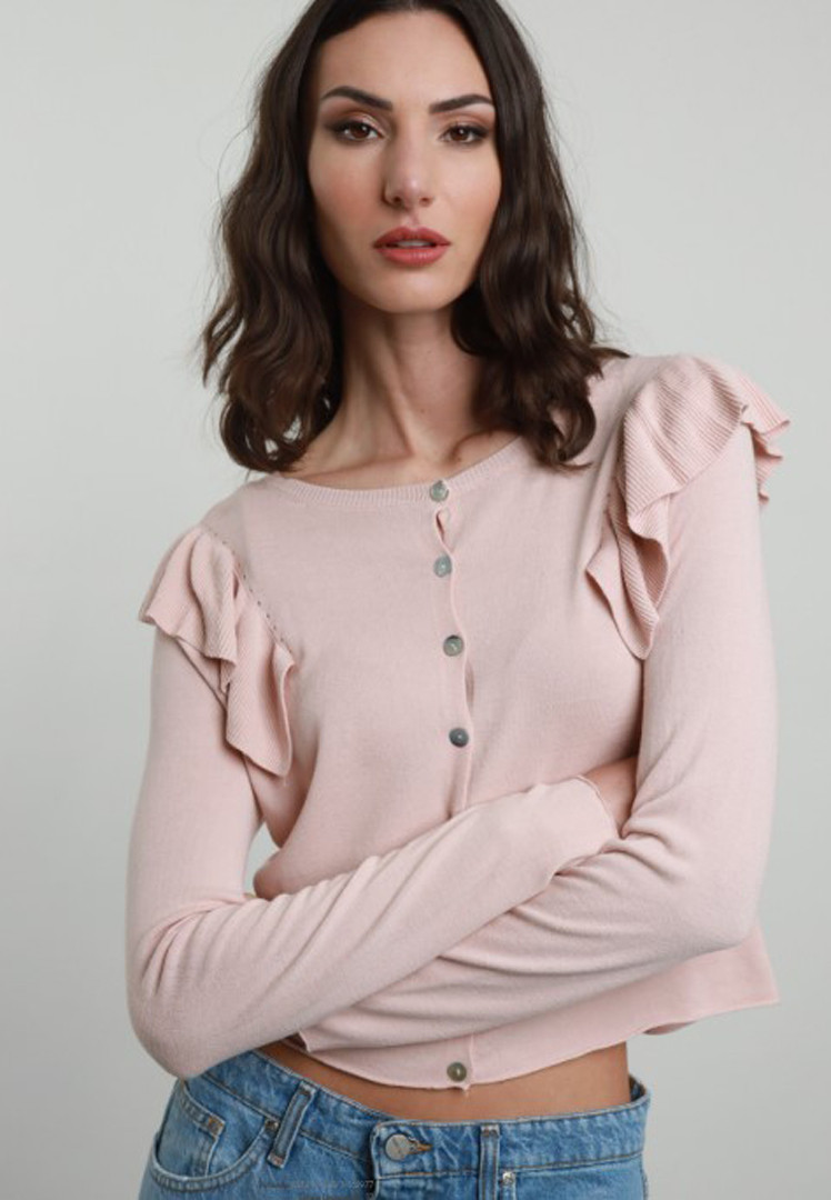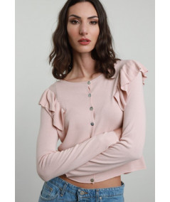 Cardigan Susy Mix con volant sulle spalle.
