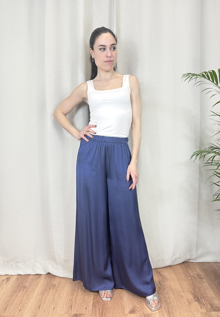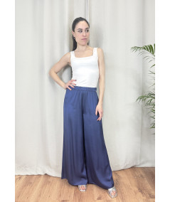 Pantalone in viscosa dal taglio palazzo con elastico in vita.