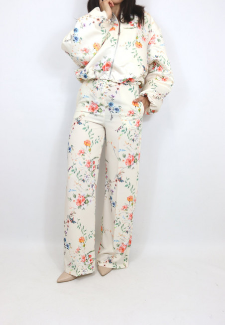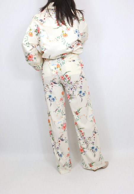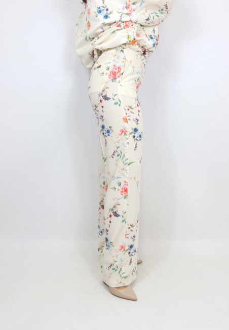 Pantalone modello palazzo stampa animalier di Tensione In. Elastico in vita e fiocchetto decorativo.