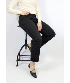 Pantalone modello 5 tasche a vita alta con passanti in vita e chiusura con zip e bottone. Modello carrot fit con fianco e gamba più morbidi e caviglia più stretta.