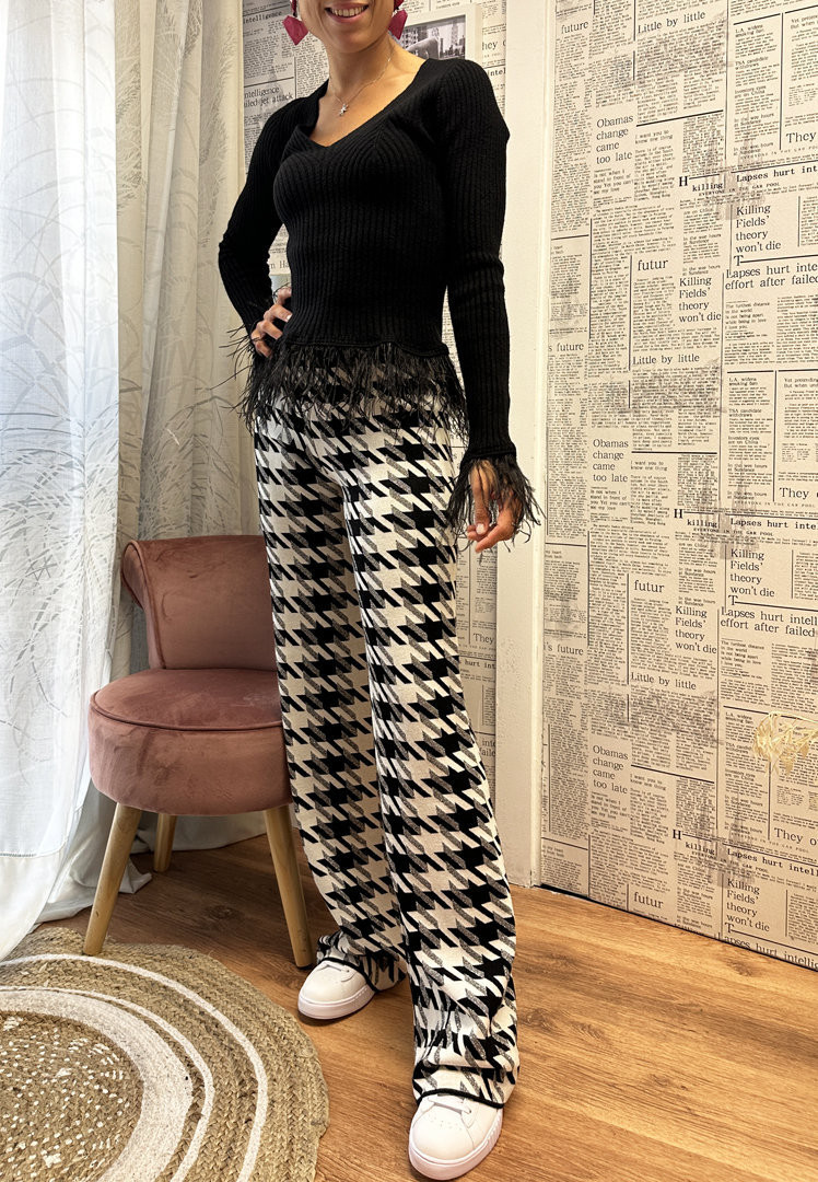 Pantalone in maglia elasticizzato con elastico in vita. Modello palazzo.