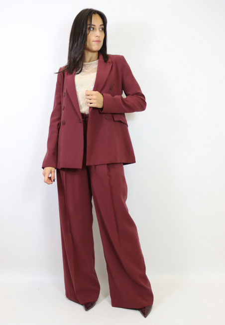 Pantalone modello palazzo con pince realizzato in morbida viscosa. Chiusura con zip e bottone, tasche laterali e passanti. Puoi abbinarlo alla giacca o al gilet per creare il coordinato più richiesto della stagione. Tre splendide varianti colore tra cui scegliere!