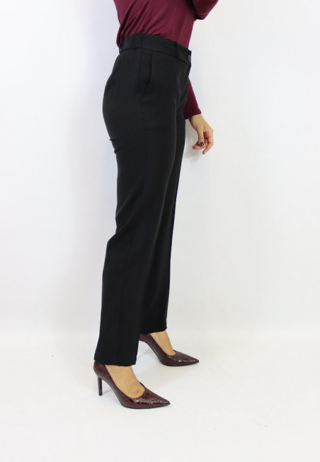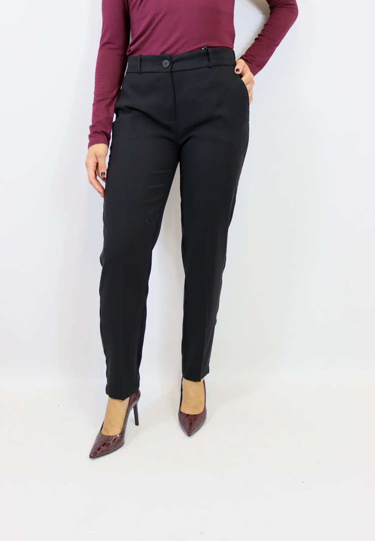 Pantalone modello sigaretta realizzato in morbida viscosa. Chiusura con zip e bottone, tasche laterali, elastico sul retro e passanti. Puoi abbinarlo alla giacca o al gilet per creare il coordinato più richiesto della stagione. Tre splendide varianti colore tra cui scegliere!