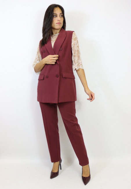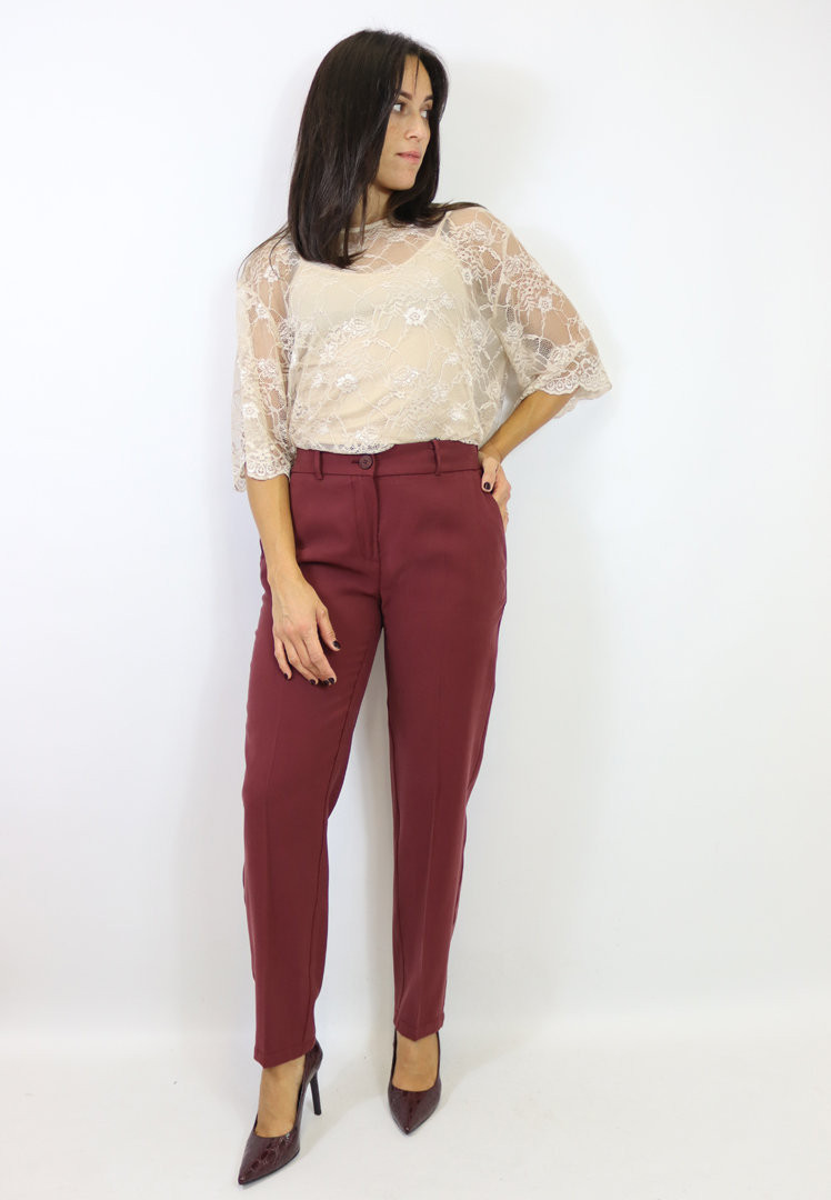 Pantalone modello sigaretta realizzato in morbida viscosa. Chiusura con zip e bottone, tasche laterali, elastico sul retro e passanti. Puoi abbinarlo alla giacca o al gilet per creare il coordinato più richiesto della stagione. Tre splendide varianti colore tra cui scegliere!