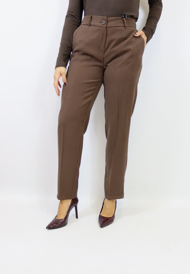 Pantalone modello sigaretta realizzato in morbida viscosa. Chiusura con zip e bottone, tasche laterali, elastico sul retro e passanti. Puoi abbinarlo alla giacca o al gilet per creare il coordinato più richiesto della stagione. Tre splendide varianti colore tra cui scegliere!
