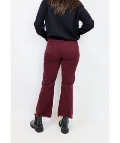 Pantalone millerighe effetto velluto. Modello flare cropped fit con chiusura frontale con zip e bottone. Modello 5 tasche e vita medio alta.