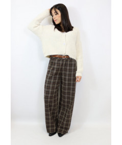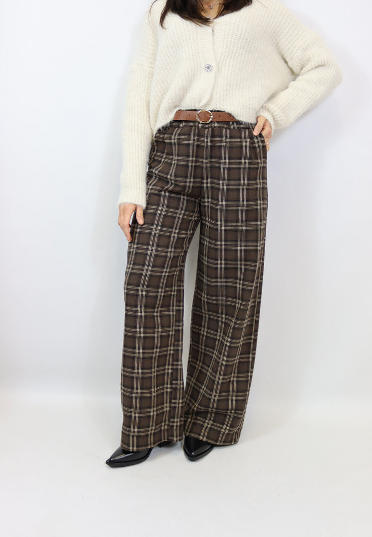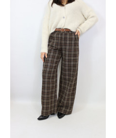 Pantalone palazzo stampa check con elastico in vita e cintura in dotazione. Un classico da avere nel guardaroba.
