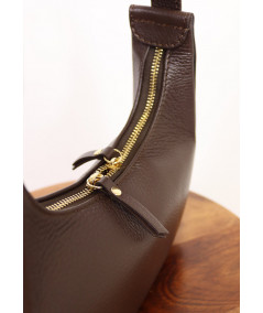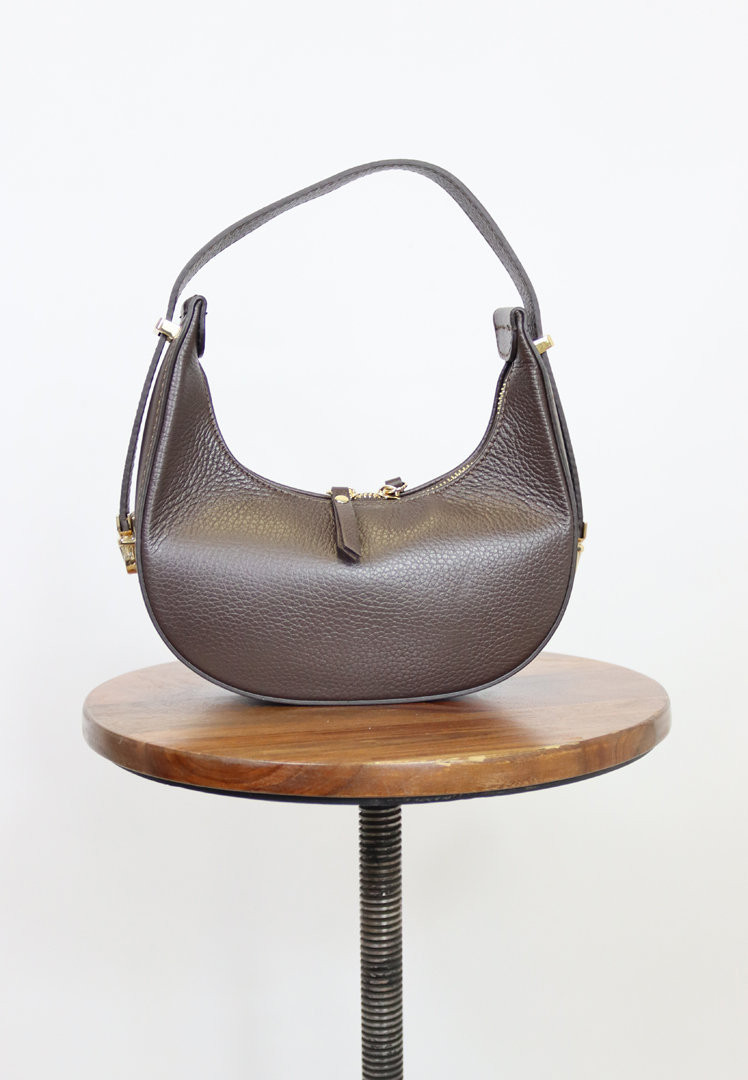Mini formato e spazio compatto ideale per avere con sé tutti gli essentials. La borsa Dalia ha una struttura rigida a mezzaluna ed è realizzata in morbida pelle martellata. Si chiude con zipComoda da indossare a spalla è bella anche portata a mano. All'interno troviamo un taschino con chiusura a zip.