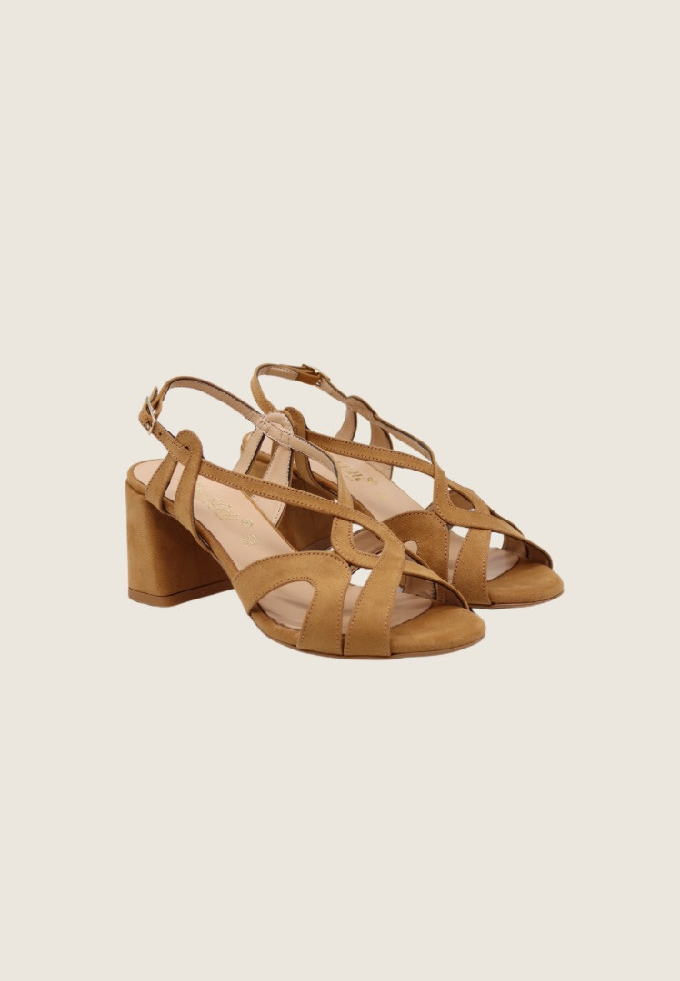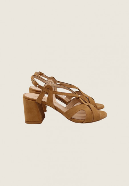 Sandalo realizzato in microsuede con cinturini incrociati sul collo del piede e chiusura dietro alla caviglia regolabile con fibbia. Il tacco svasato fasciato misura 7,5 cm. Bello sia per le tue occasioni che sotto un semplice look da giorno.