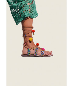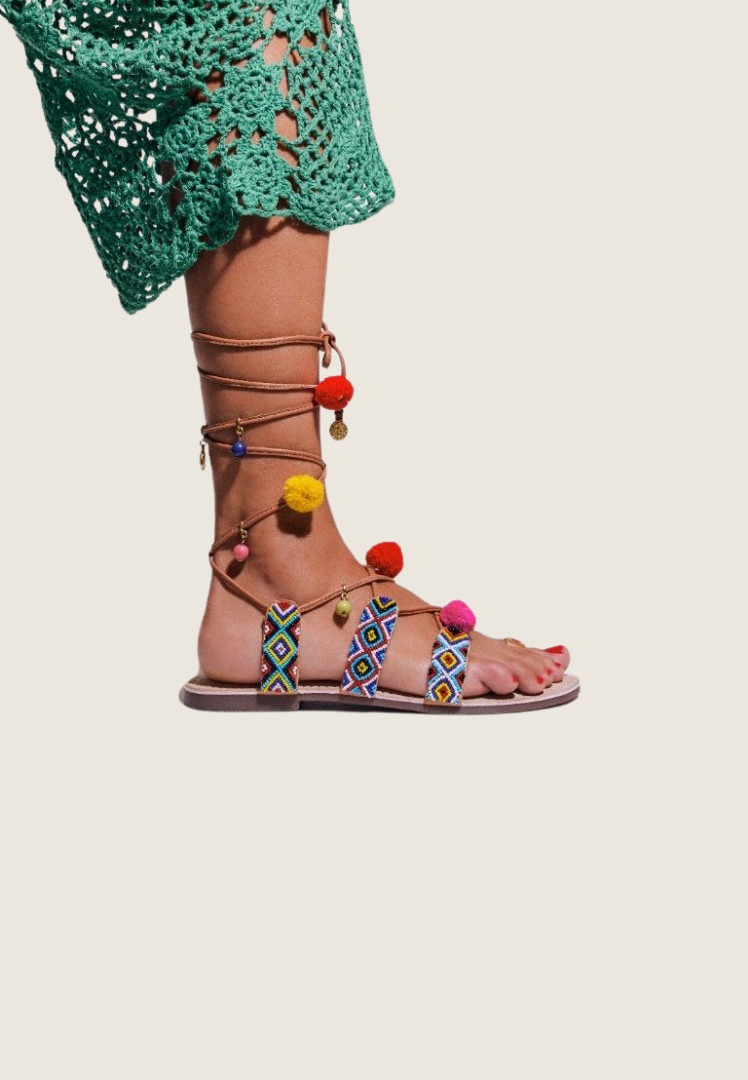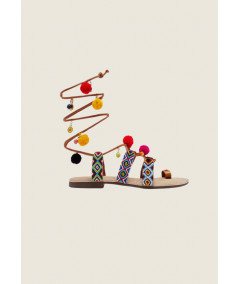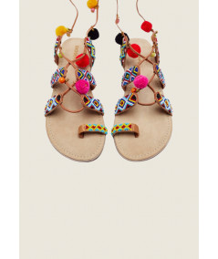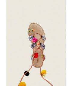 Sandali alla schiava con anello realizzati in pelle con perline, charms e pon pon multicolor. Dai un tocco di colore e carica alla tua estate!
