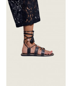 Sandali alla schiava con anello realizzati in pelle con borchiette piatte, charms di perline e peperoncini. Dai un tocco di brio e carica alla tua estate!