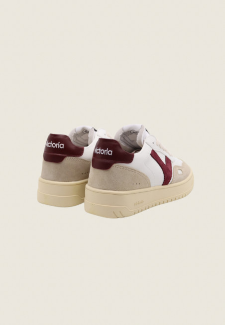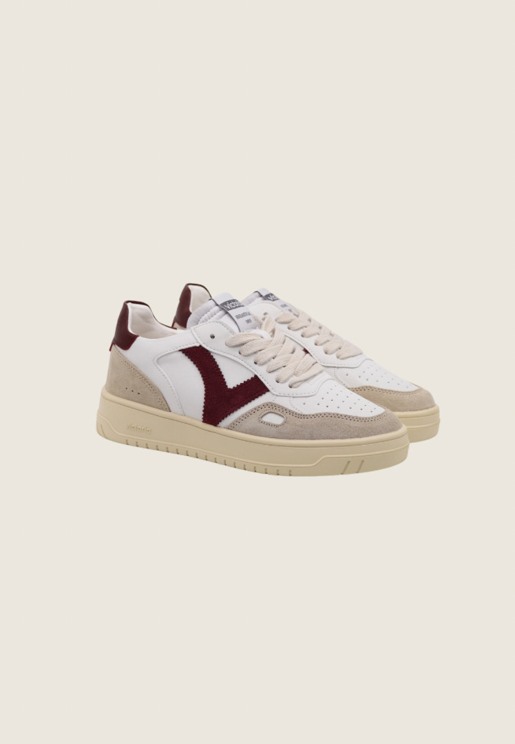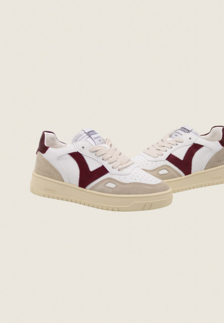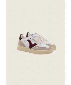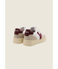 Sneaker di tendenza realizzata in similpelle con inserti in crosta di pelle. Dettagli colorati nella V laterale e nell'inserto posteriore con il logo del marchio. Dettaglio a finestra sul lato. Suola leggermente ambrata di 3,5 cm.