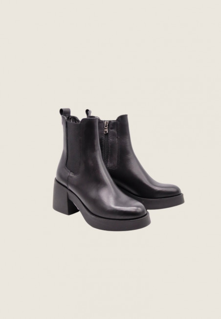 Stivaletto realizzato in morbida pelle dalla forma leggermente affusolata. Presenta l'elastico dalla parte esterna e la zip dal lato interno per facilitarne la calzata.