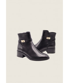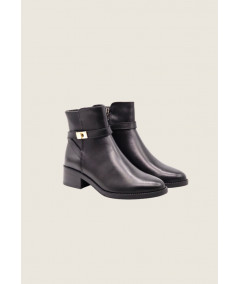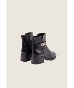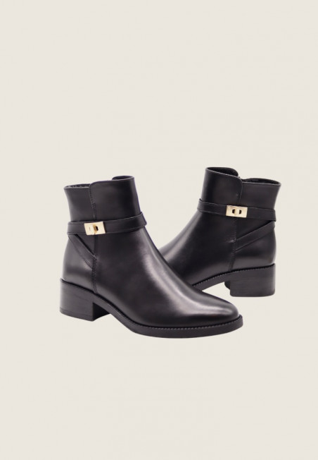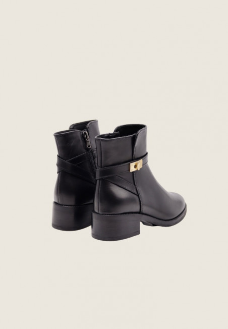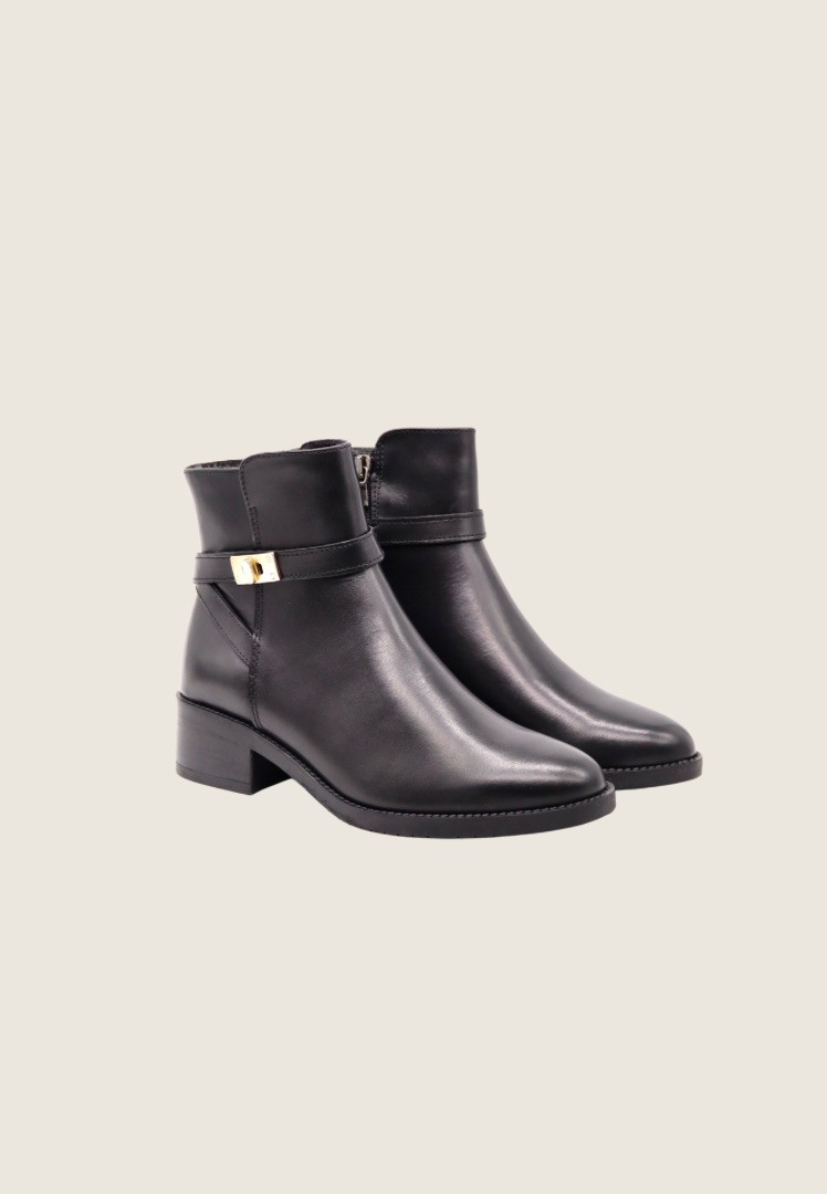 Stivaletto realizzato in morbida pelle con cinturini decorativi e finta fibbia metallica color oro. Sta bene praticamente su qualunque look, dai più casual ai più chic.
