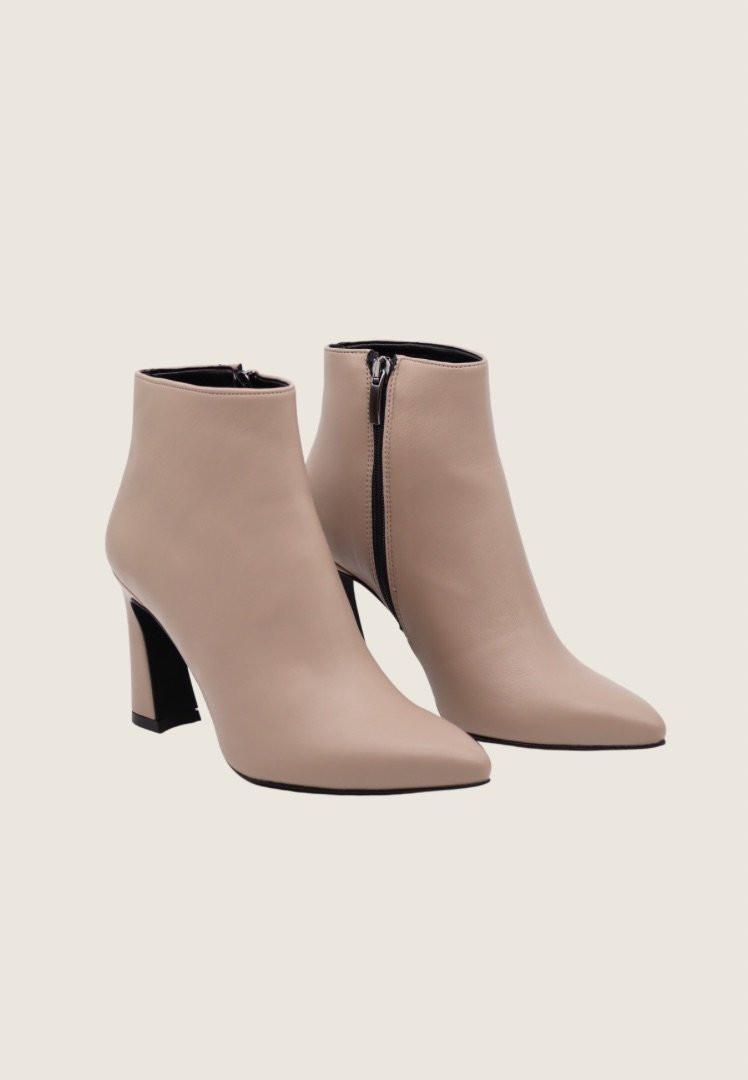 Stivaletto realizzato in similpelle di ottima qualità con punta e tacco svasato. Cerniera sul lato interno. Il tacco misura 9 cm.