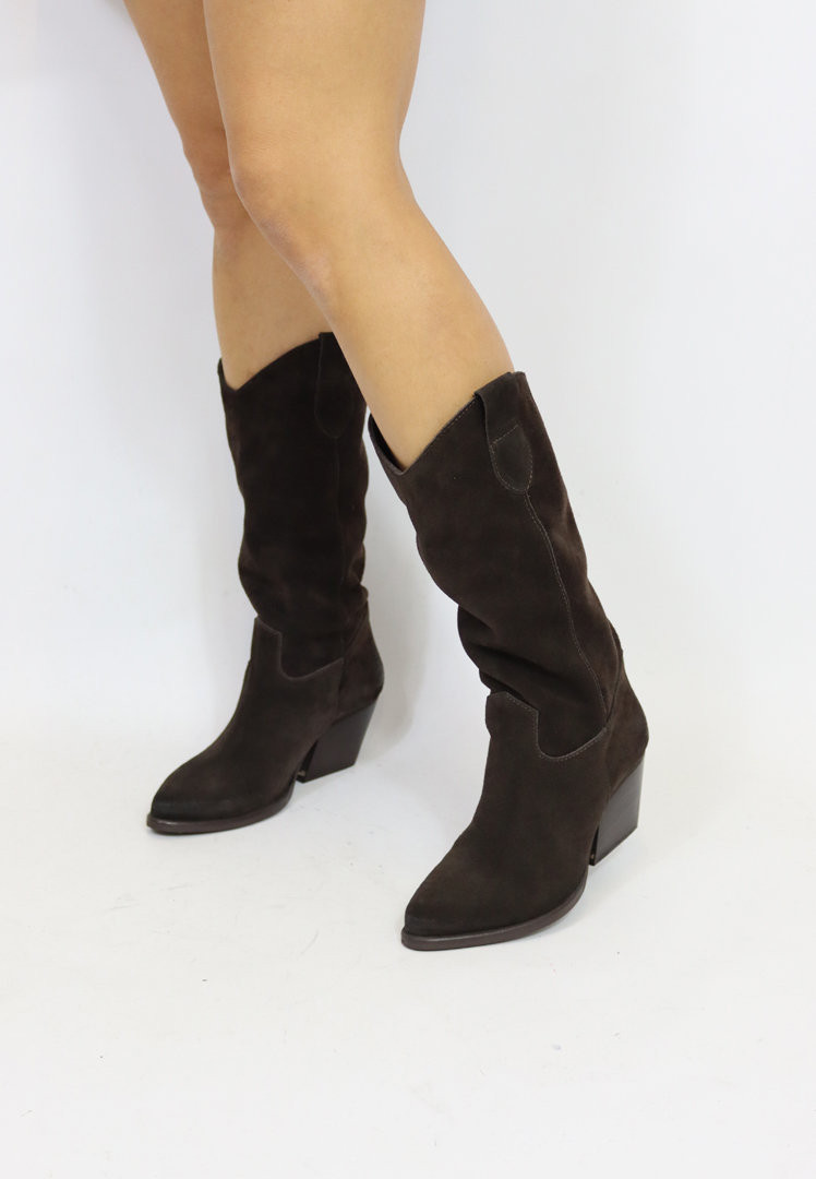 Stivale modello texano con tipico gambale a V. Uno stivale sempre di tendenza, disponibile in due meravigliose varianti colore. Punta stretta e tacco alla texana di 7 cm. Il gambale misura 32 cm nel numero 37.
