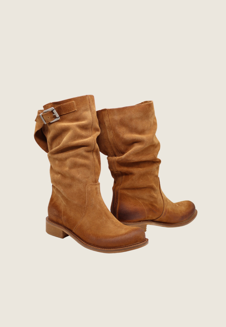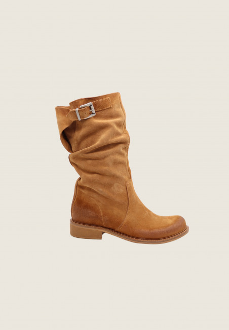 Biker realizzato in suede con punta stondata, gambale arricciato e fibbietta regolabile. Il gambale misura 27 cm e resta morbido sulla gamba. Un classico da avere nell'armadio che sta sempre bene a tutte!