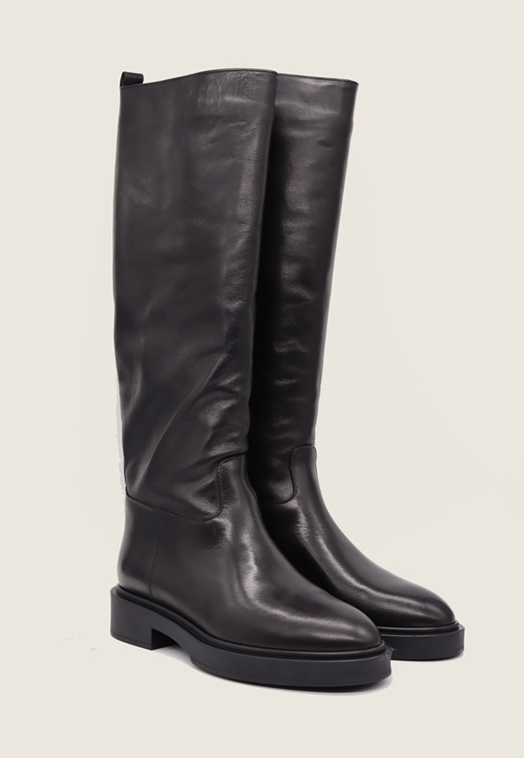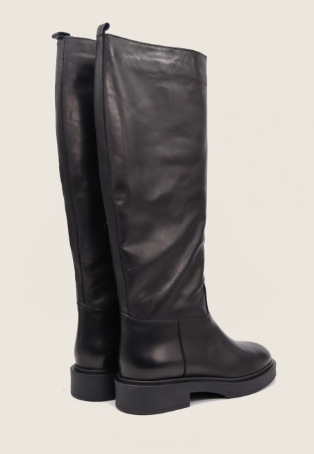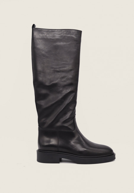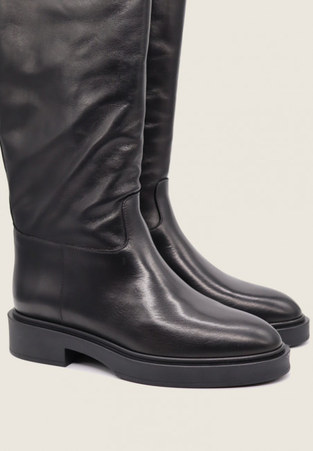Questo stivale, realizzato in pelle liscia pieno fiore è dedicato a quelle donne attente alla moda, che vogliono ai loro piedi un modello grintoso e di carattere. La suola è in gomma liscia spessa e il tacco misura 3 cm. Gambale di 41,5 cm dalla suola nel 37 EU. Made in Italy
